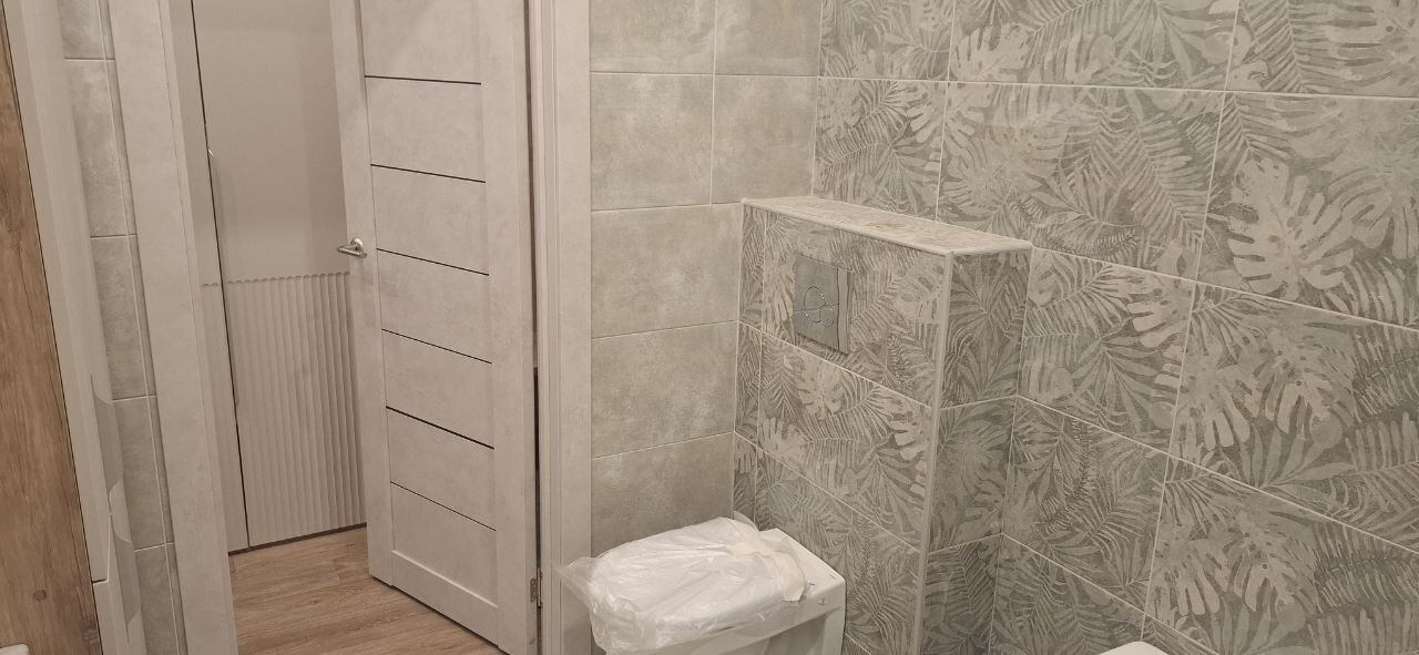 - санузел - плитка, раковина, унитаз, ванна угловая